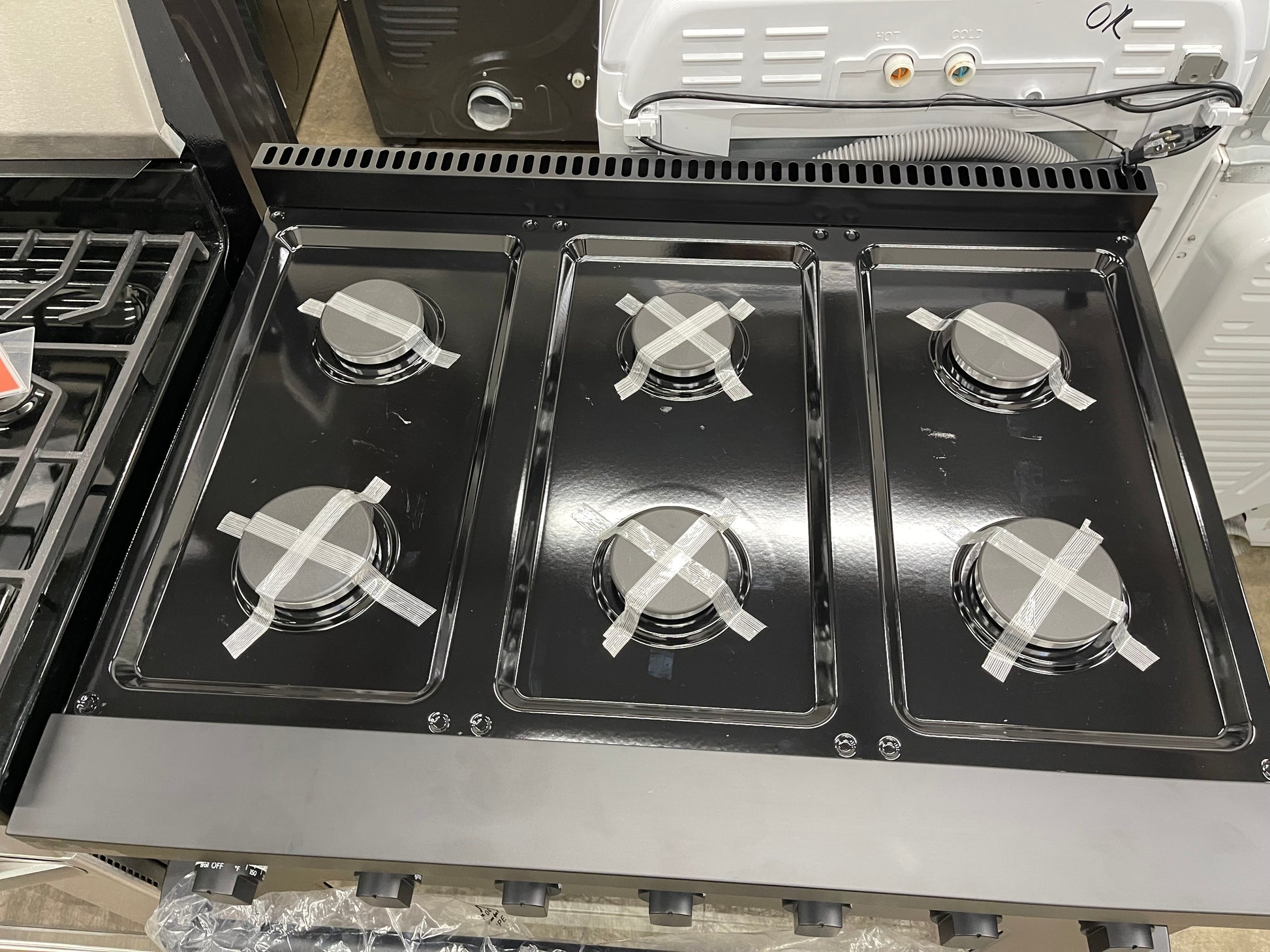 36 in. Haven Collection 6.0 cu. ft. Gas Range, 6 Burners, Convection Oven, Knob LEDs, Storage Drawer, Matte Black
