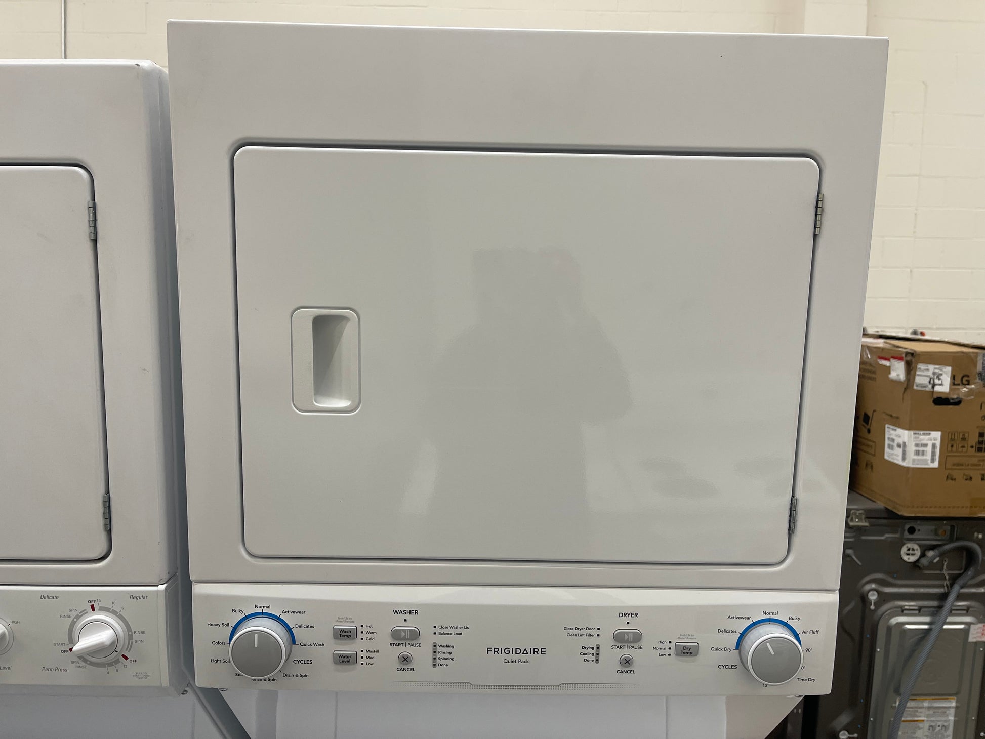 Combining excellent performance with convenience, Frigidaire's Laundry Center is a great fit for any home. This compact appliance makes it easier for you to move your clean and wet load into your dryer. With 10 wash cycles and 6 dry cycles, all your laundry needs will get the specific care it deserves. Cycle status lights will keep you informed on the wash cycle each step of the way, and the end of cycle beep will signal when your laundry is done. The MaxFill™ options ensure that your laundry is as clean as it could be, while 4 timed dryer cycles allow you to choose how long your cycle should last. Laundry day has never been this easy, thanks to Frigidaire.