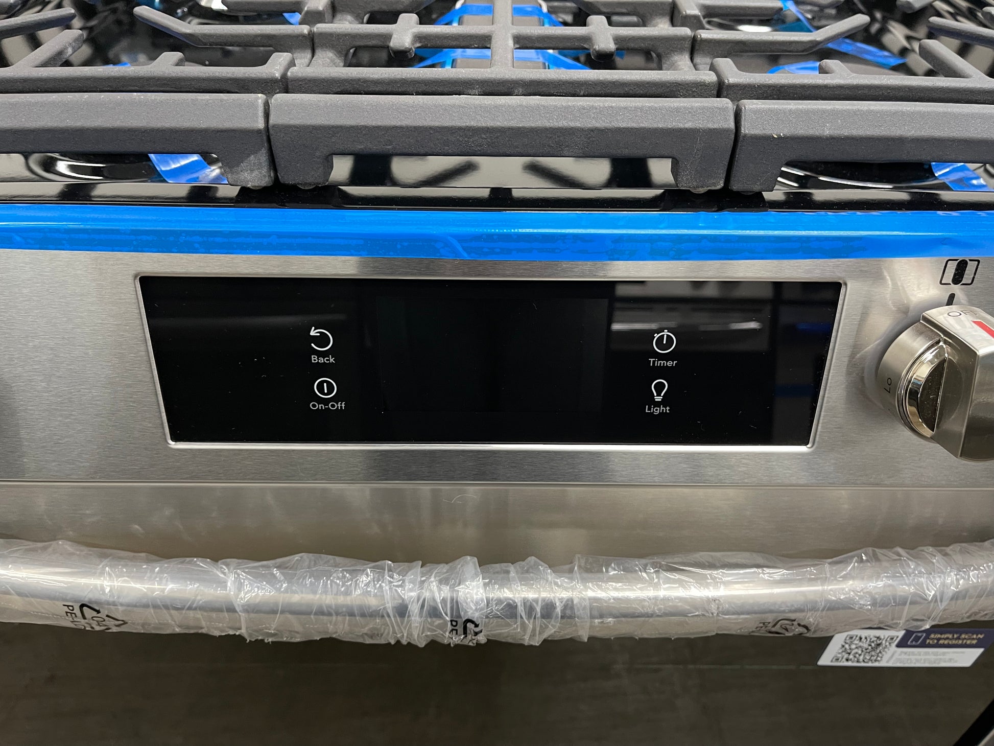 Frigidaire Gallery Series GCFG3060BF 30 Inch Freestanding Gas Range with 5 Sealed Burners, 6.0 cu.ft. Oven Capacity, Air Fry, Total Convection, No Preheat, Touch Screen Controls, Temperature Probe, Steam Bake, Backlit LED Knobs, Sabbath Mode, and ADA Com