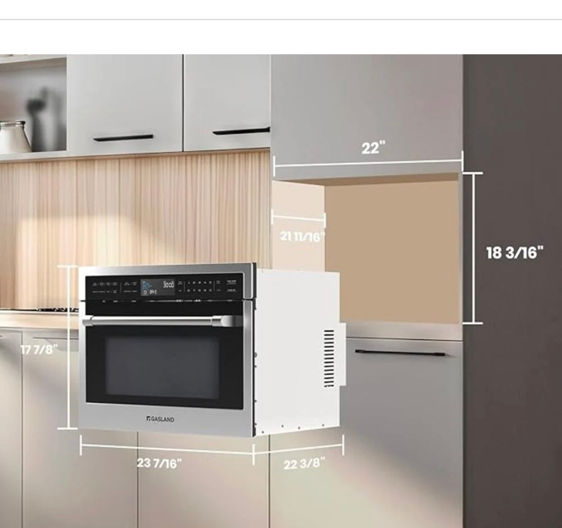 - 【2 In 1 Sleek Design】The design of the microwave and oven combination blend seamlessly into their surroundings without taking up any counter space. Product size: 23.4"x 22.4"x 17.9"; Built-in size: 23.6"x21.7"x17.8"; Voltage: 120V~60HZ