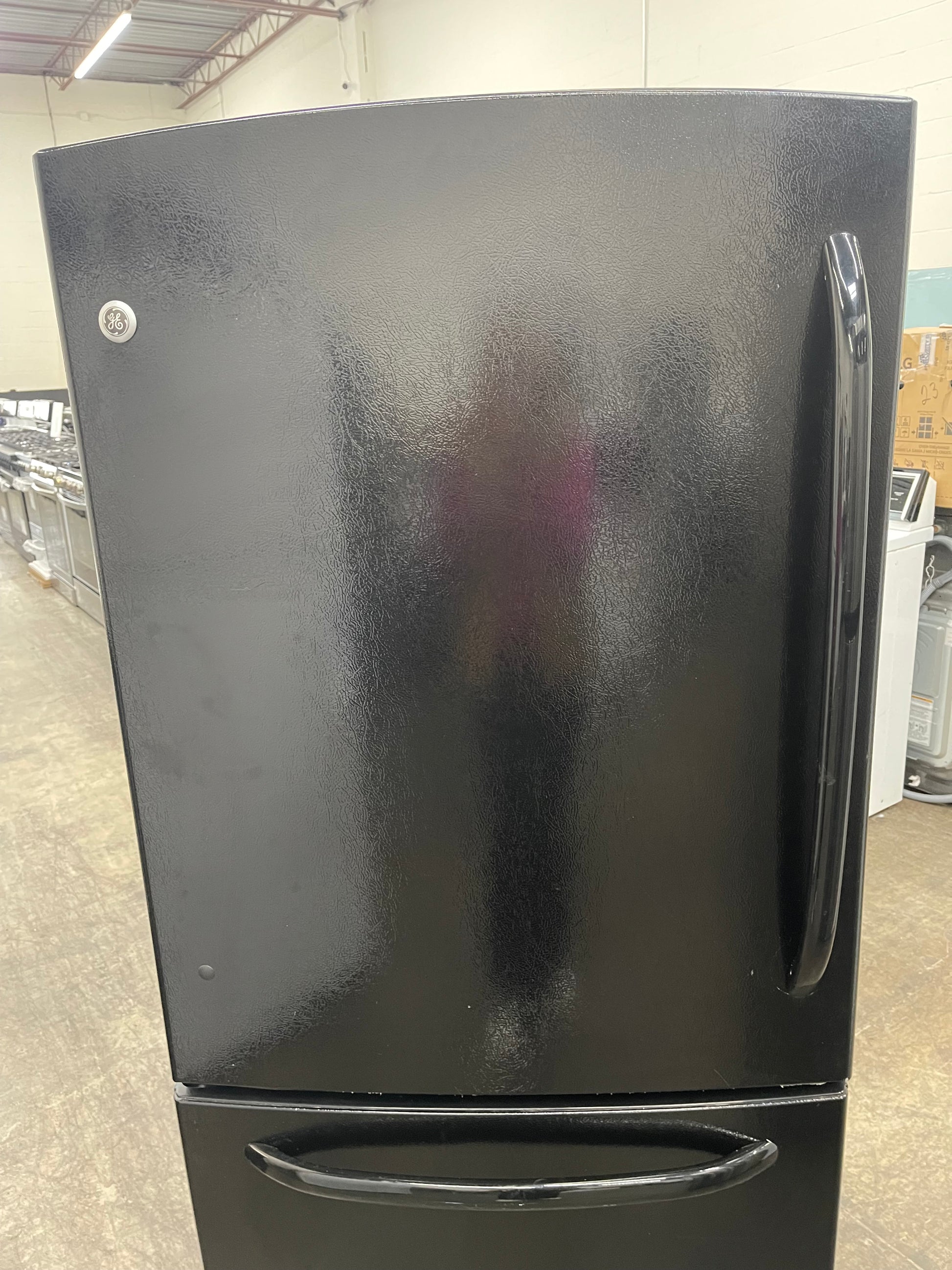 GE GDSC0KCXBB 20.2 cu. ft. Bottom-Freezer Refrigerator with 4 Glass Shelves, Gallon Door Storage, Snack Drawer and Illuminated Upfront Temperature Controls: Black