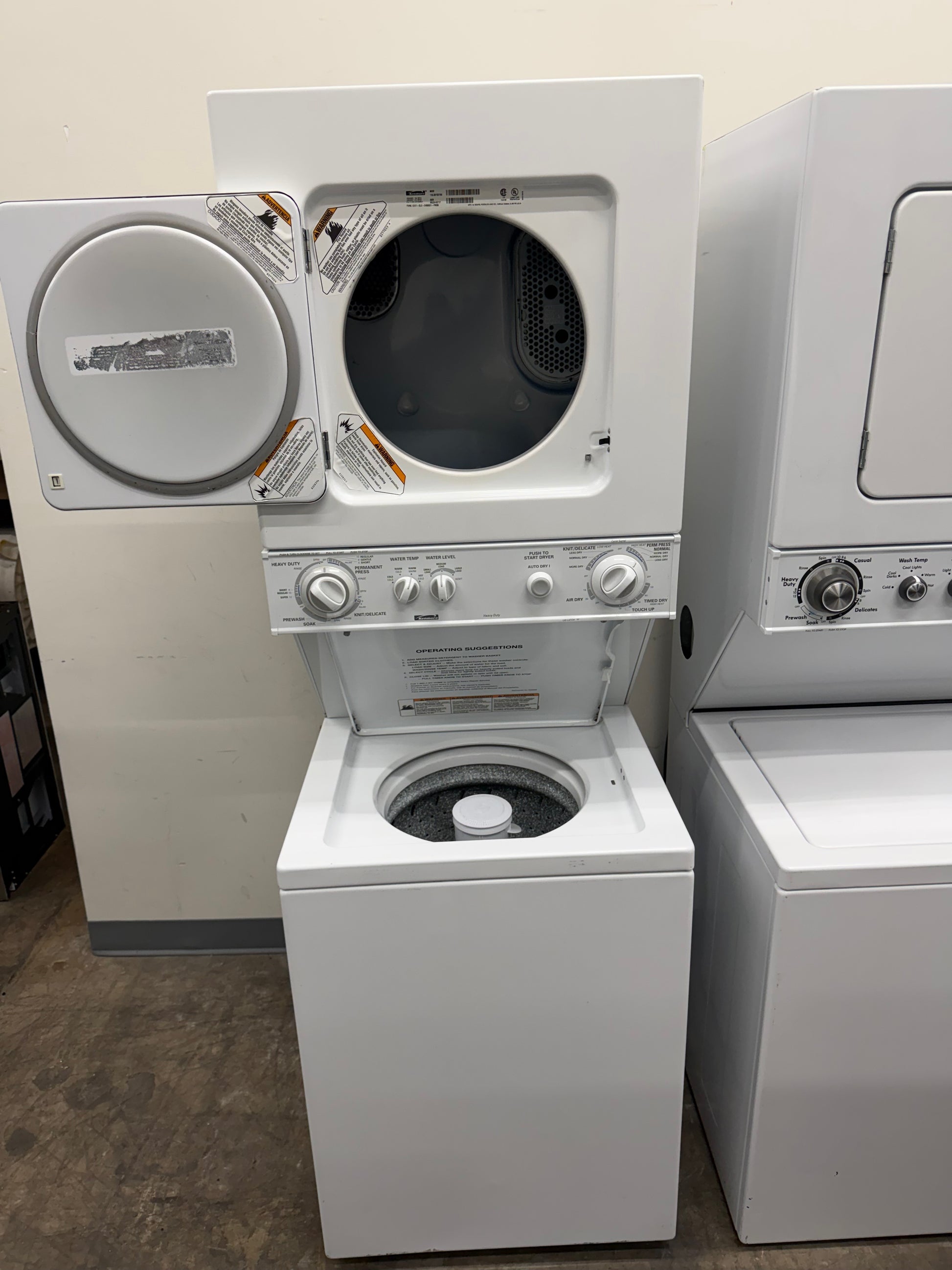 Save space without sacrificing performance with this Kenmore 24-inch Stacked Washer and Electric Dryer Laundry Center, model 110.88752796. Designed for apartments, condos, and compact laundry areas, this unit offers full laundry functionality in a space-saving vertical design.