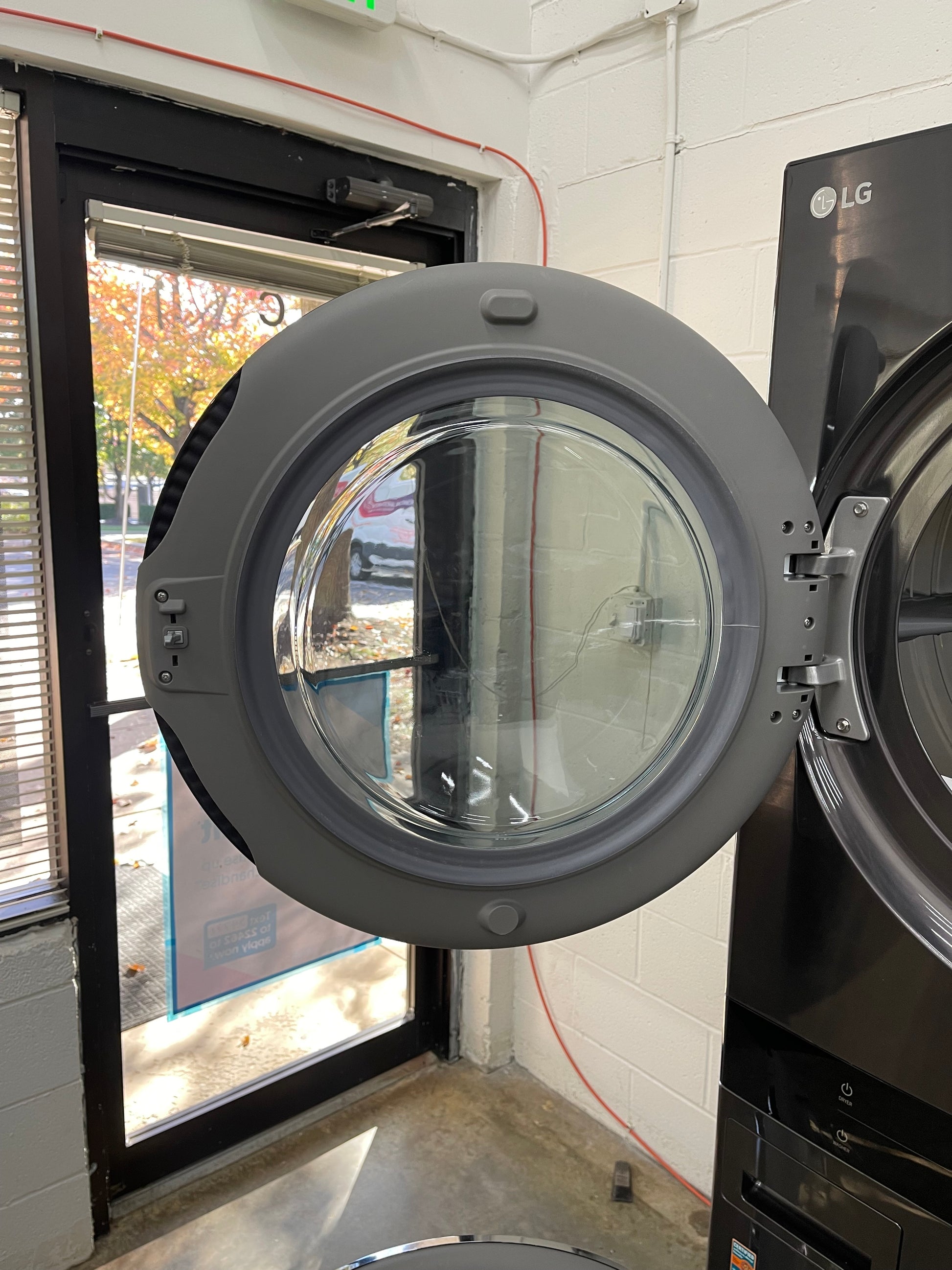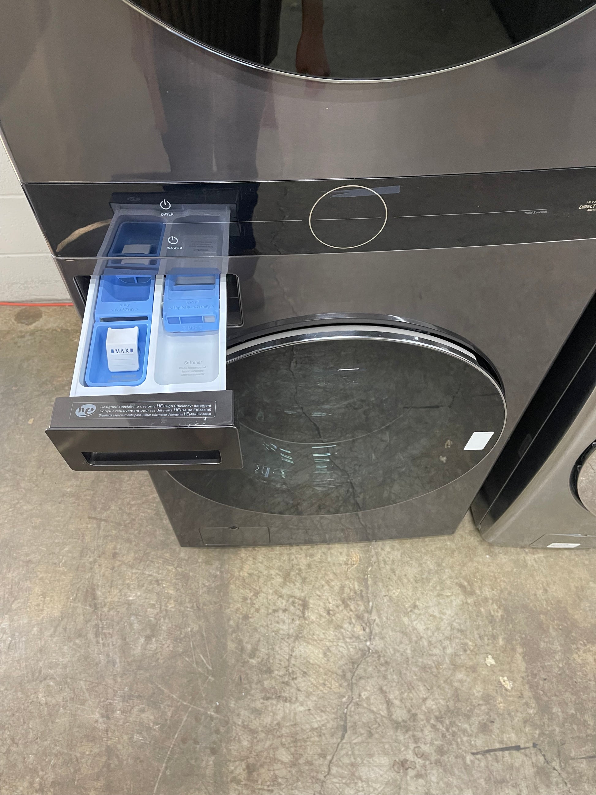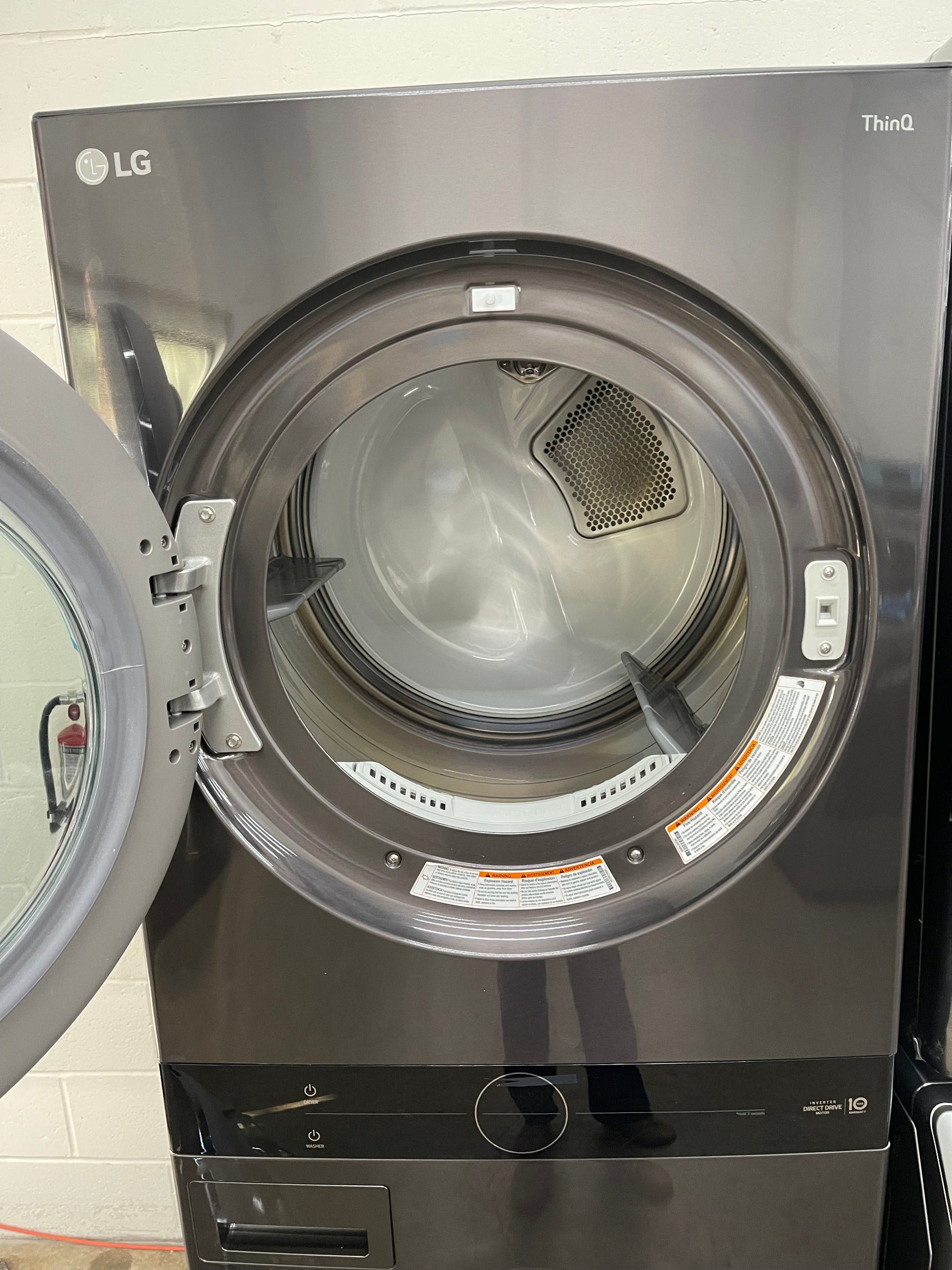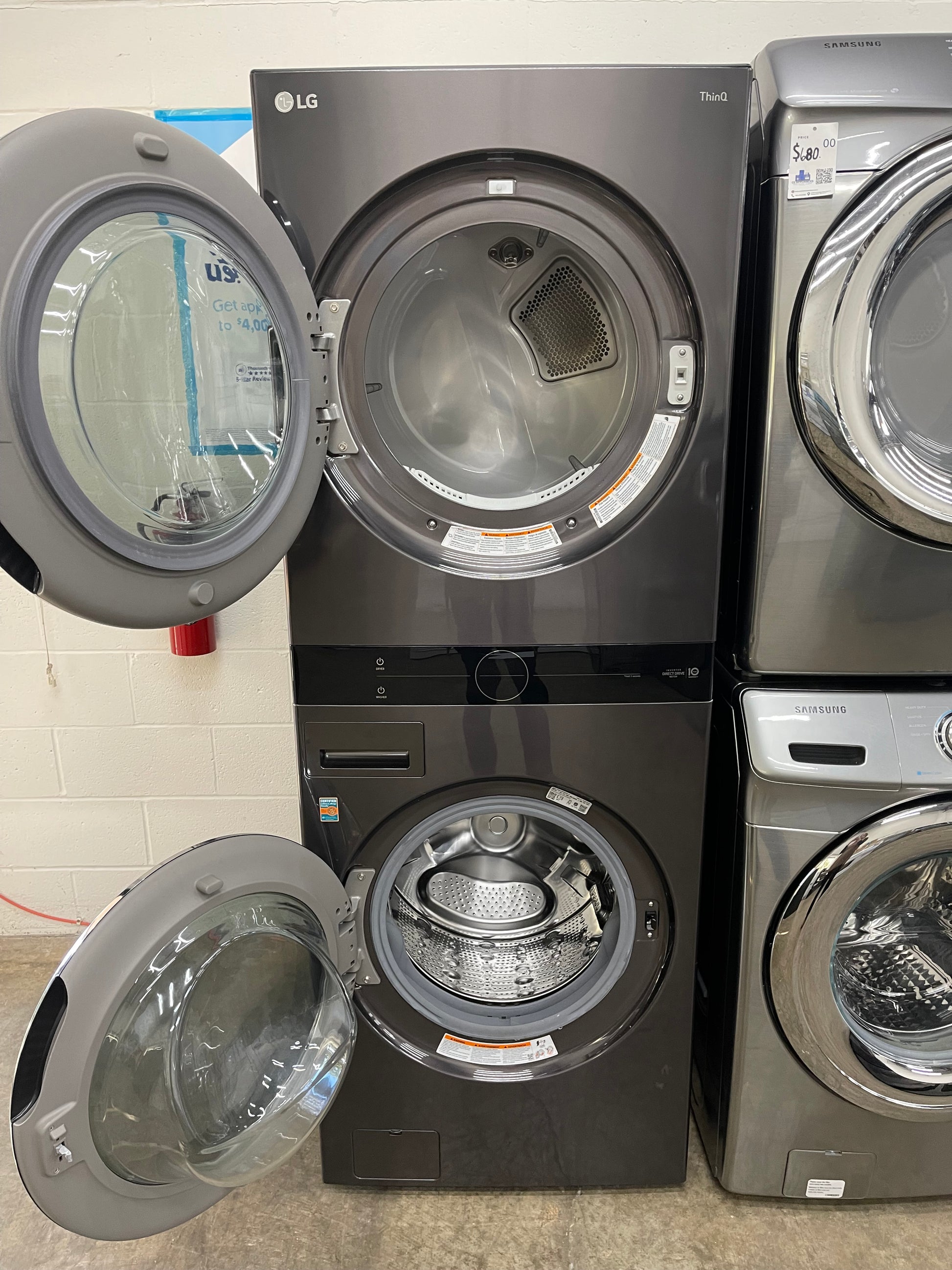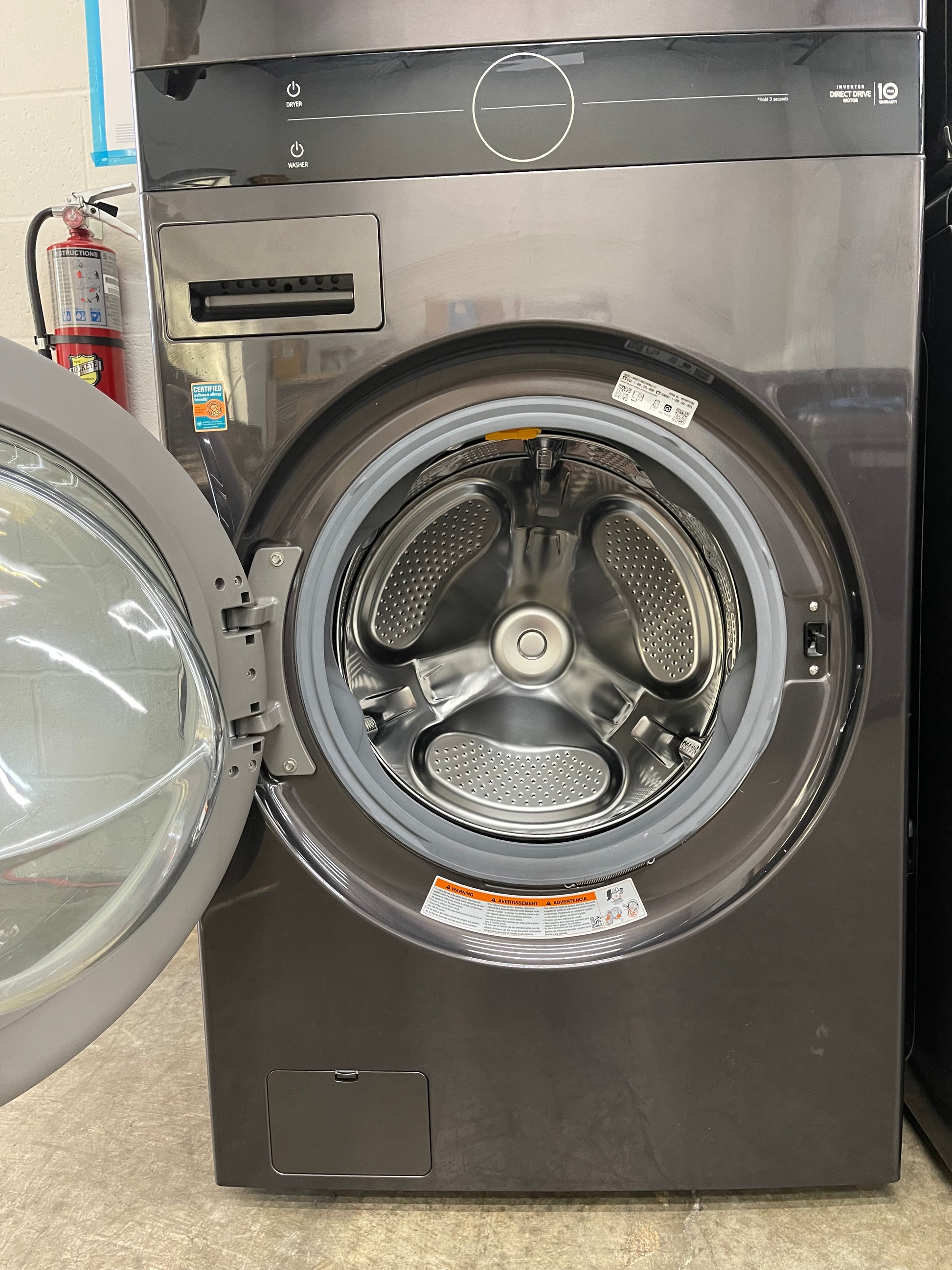 LG WashTower Stacked SMART Laundry Center 4.5 Cu.Ft. Front Load Washer & 7.4 Cu.Ft. Electric Dryer in Black Steel w/ Steam - Used
