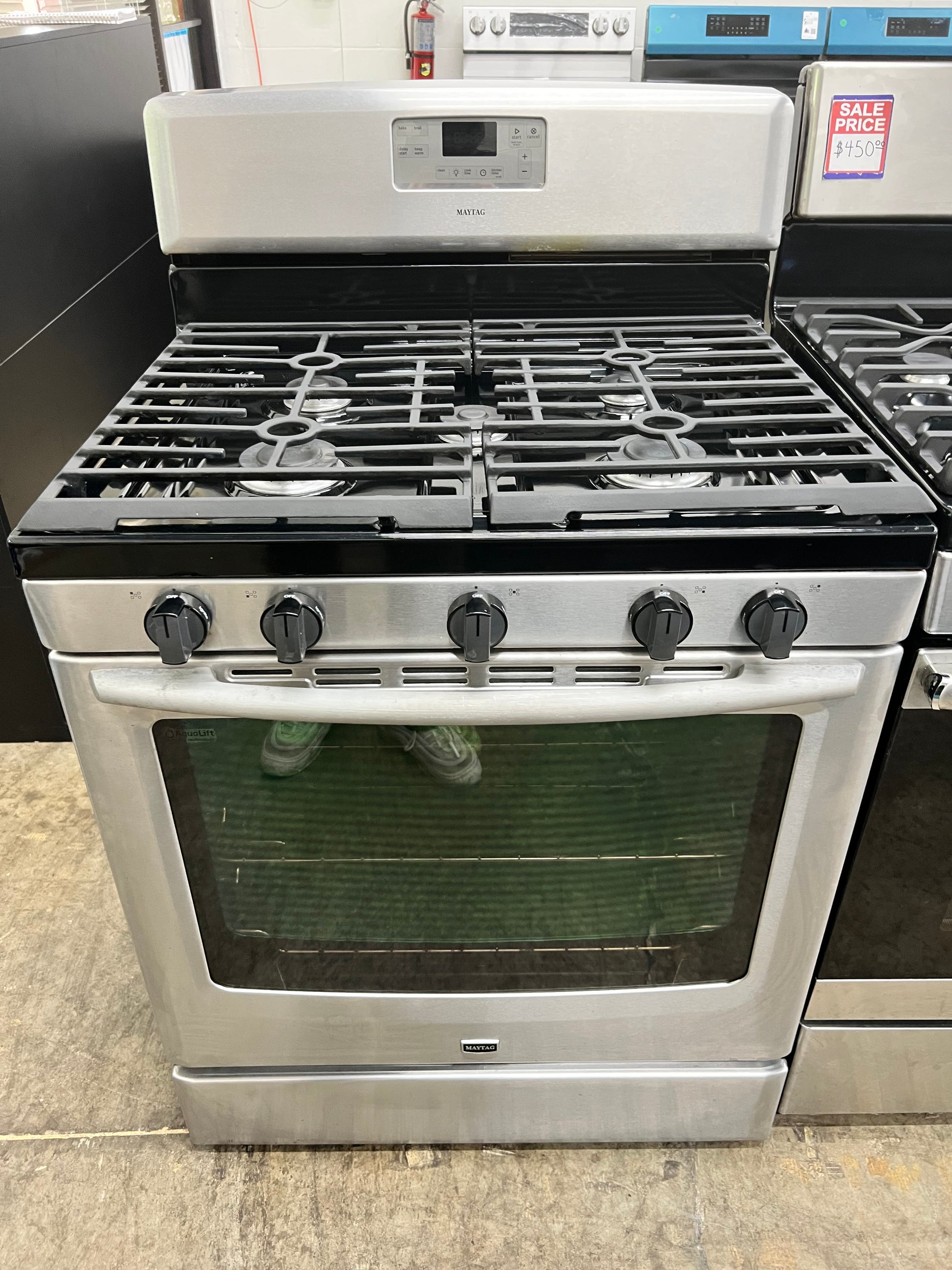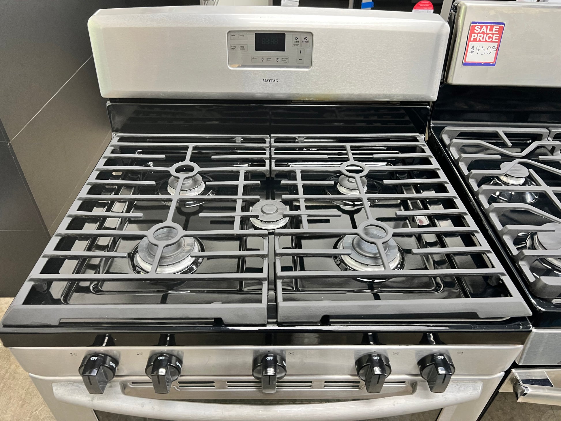 Maytag 30-in 5 Burners 5.8-cu ft Self-cleaning Freestanding Gas Range in Stainless Steel-Model #MGR8674AS