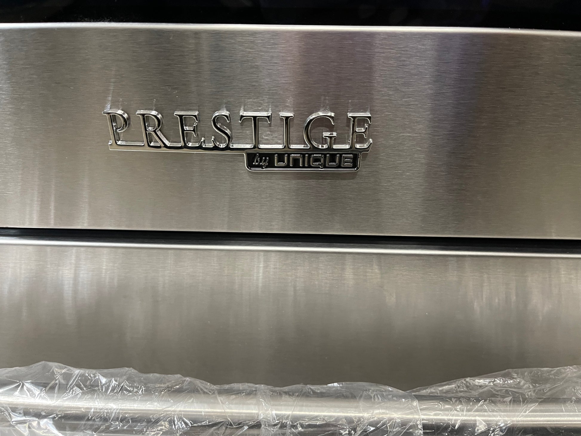 The Unique Prestige 24 in. stainless convection gas range delivers sleek modern design and superb performance at an affordable price. Convection cooking circulates heat for even distribution while the waist-high broiler provides the option of intense searing. A thermocouple flame failure device (FFD) stops the flow of gas (NG natural gas or LPG propane) to the burners, if the flame is unintentionally extinguished. Cast-iron grates, sealed burners, automatic electric spark ignition and a compartment for extra storage for your pots and pans, all packed into a 24 in. range, make cooking and cleaning effortless.