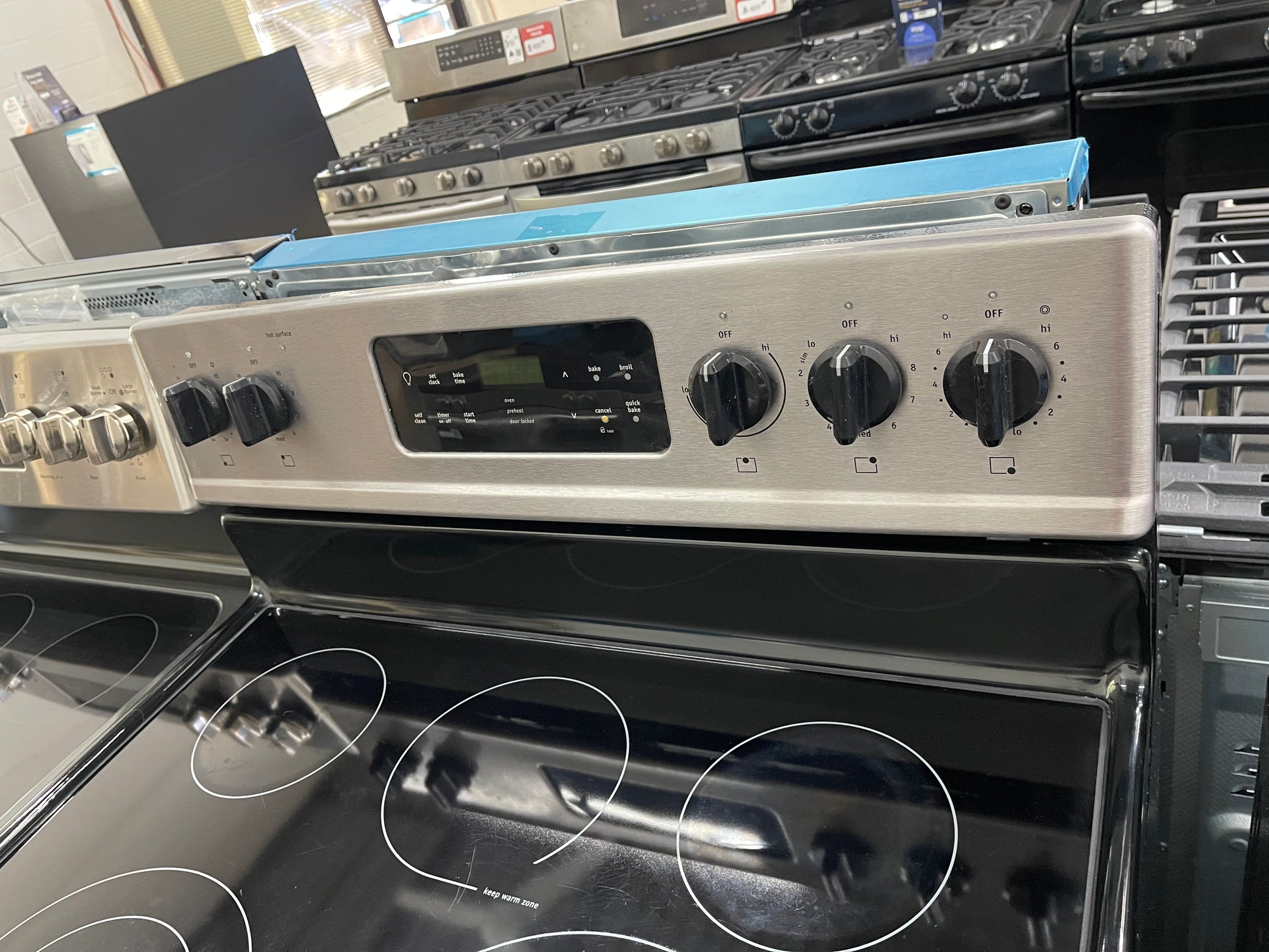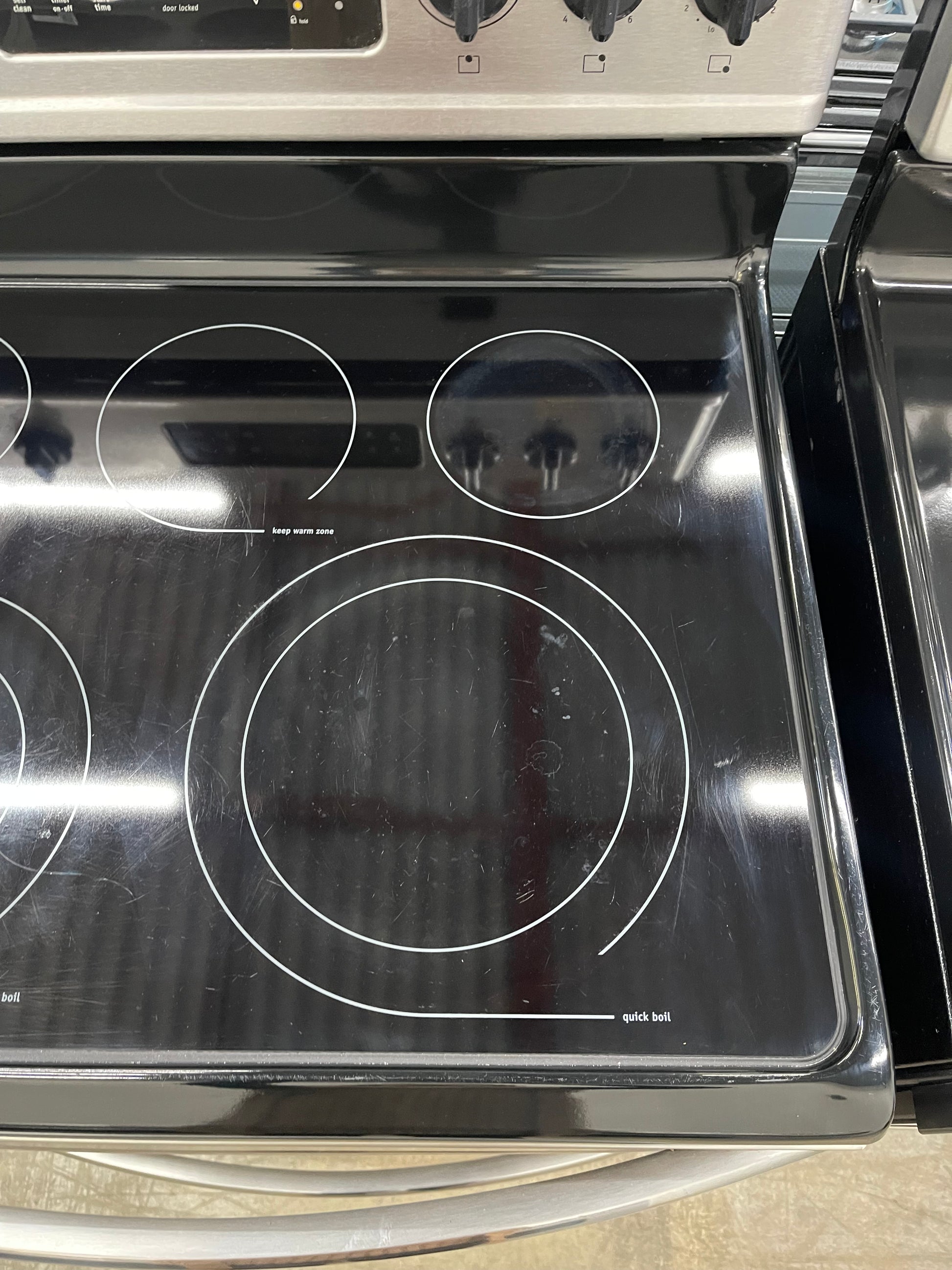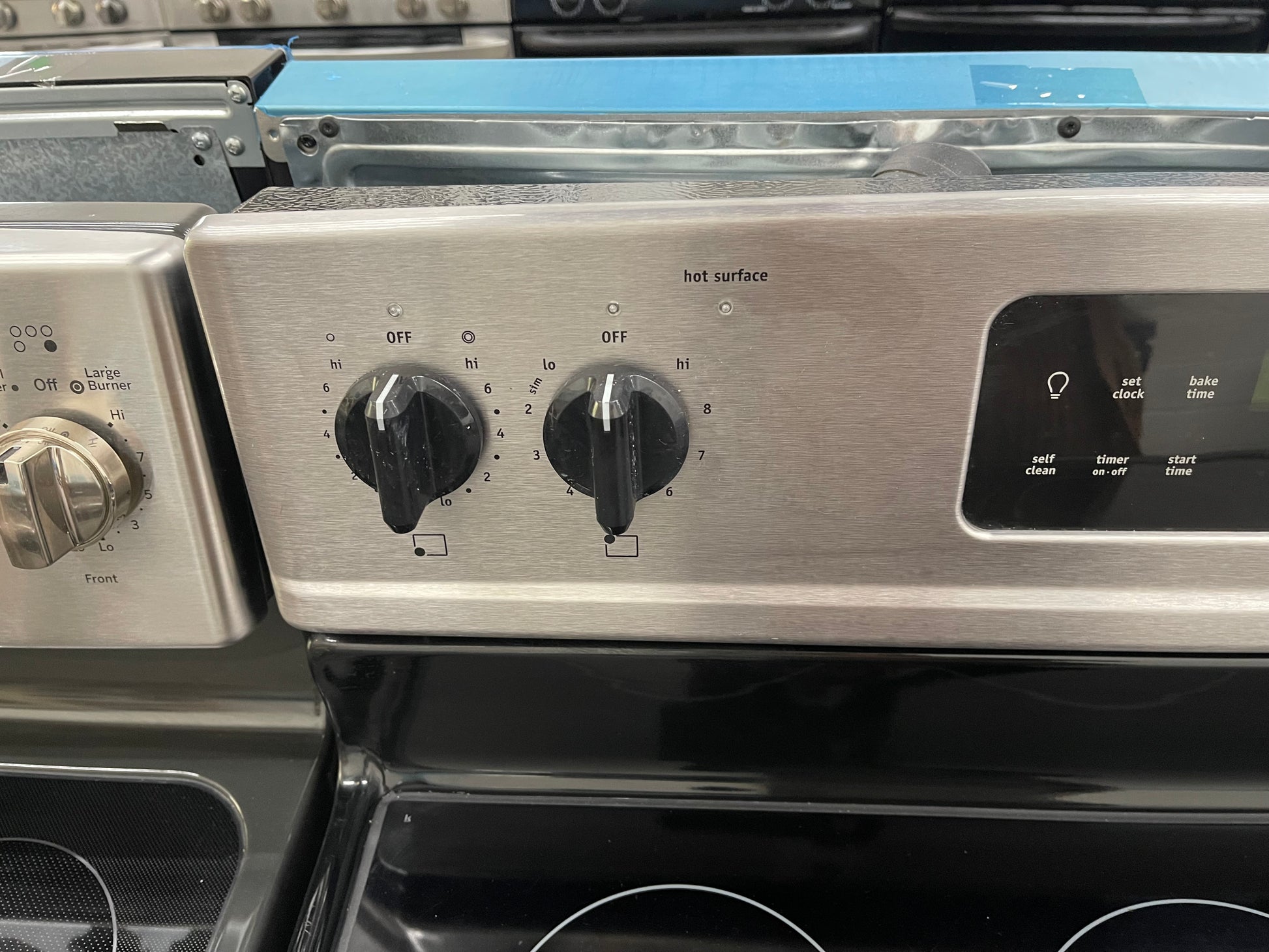 Frigidaire Gallery Smooth Surface freestanding electric range in smudge-proof stainless steel provides a clean, polished look on the outside while cooking your foods to perfection on the inside