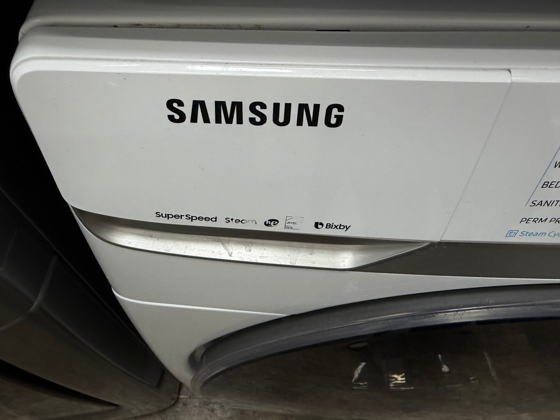 This front-load dryer from Samsung uses the power of Multi-Steam™ technology to eliminate stains, odors, and wrinkles. Plus, with ten preset dry cycles, four temperature settings, and four dry levels, you can always choose just the right cycle for any type of laundry item. Cycle selections include Refresh, Steam Sanitize+, Normal, Heavy Duty, Permanent Press, Active Wear, Bedding, Delicates, Time Dry, Air Fluff, Quick Dry, Downloaded. With Sensor Dry technology, you'll never have to worry about under-dried or overdried clothes ever again. Sensor Dry senses the needs of each individual load and sets the optimum temperature and drying time accordingly. Samsung's convenient Bixby allows you to choose the best cycle option and notifies you on your smartphone when the cycle is complete. And, this dryer is ENERGY STAR® certified, meaning it's both environmental and economical - you'll benefit the environment by reducing energy consumption and you'll save a small fortune in utility costs.
