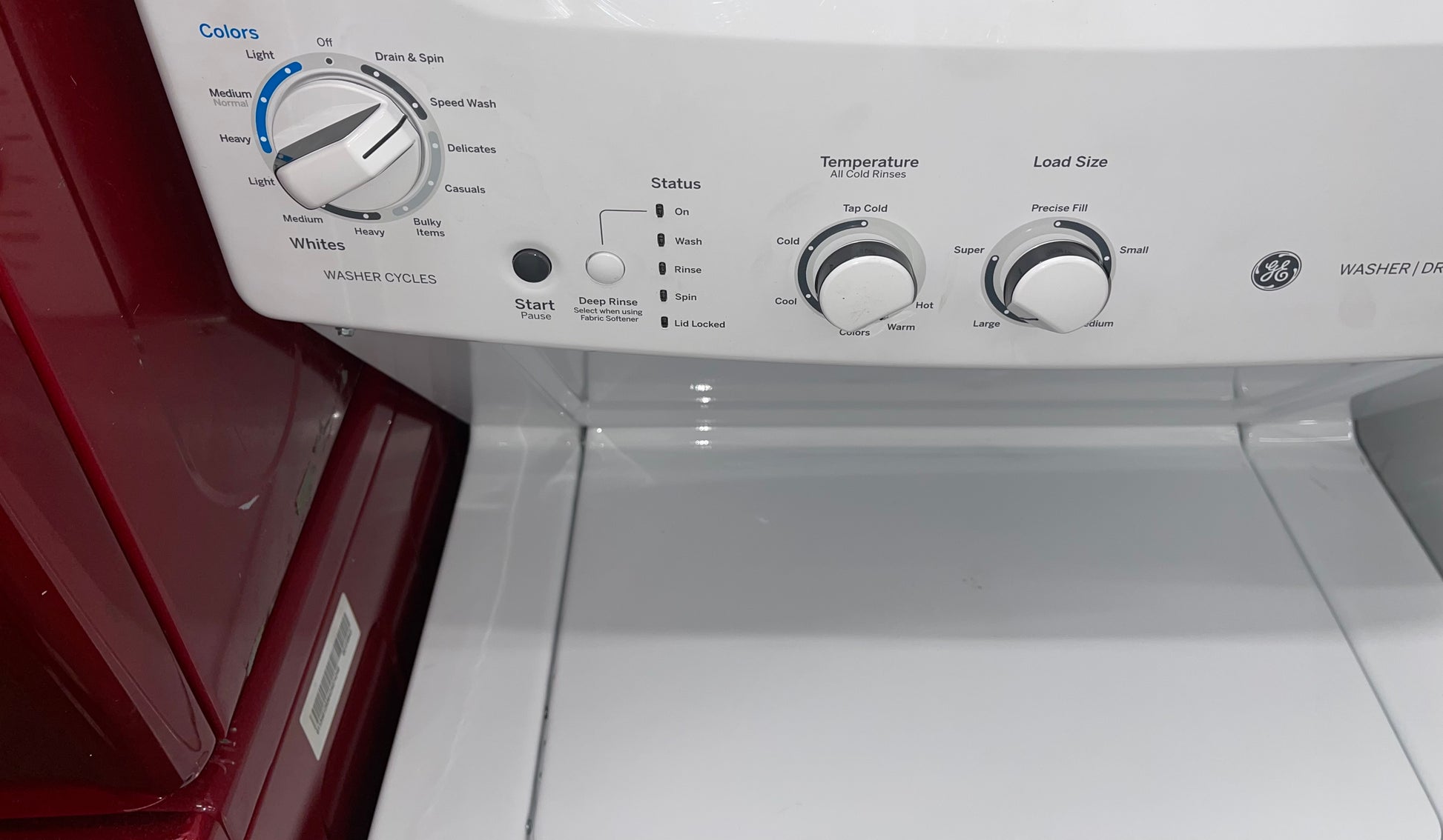 GE Unitized Spacemaker® ENERGY STAR 3.9 cu. ft. Capacity Washer with Stainless Steel Basket and 5.9 cu. ft. Capacity Electric Dryer Model #:GUD27EESNWW